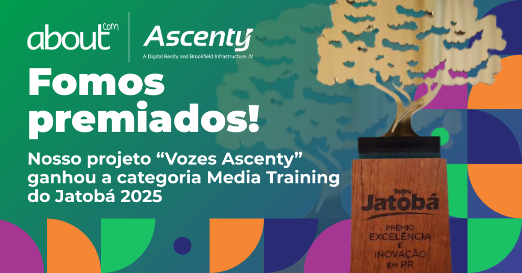 A aboutCOM foi reconhecida no Prêmio Jatobá PR 2025, na categoria Media Training, com o case “Vozes Ascenty: mais que um media training, uma formação completa de porta-vozes”.